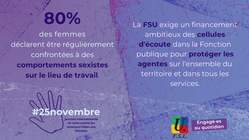 Pour la FSU, le 25 novembre n’est pas un jour symbolique, mais une journée de lutte et de mobilisation mondiale : celle des hommes et femmes unis pour mettre fin à toutes les formes de violences sexistes et sexuelles. La FSU Hors de France appelle l’ensemble des collègues à se mobiliser le 25 novembre et à porter collectivement la lutte contre toutes les formes de violences sexistes et sexuelles dans notre réseau.