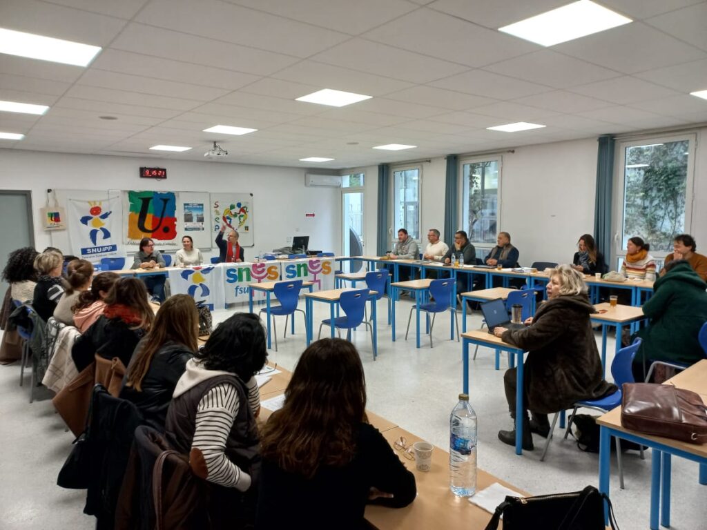 Une journée de formation syndicale FSU a été organisée, mardi 27 janvier 2026, au lycée Descartes de Rabat. Les représentant·es des secteurs HDF de la FSU (SNUipp, SNES et SNEP) ont animé cette journée qui a rassemblé plus d’une trentaine de militant·es investi·es dans tous les établissements de la zone Maroc.